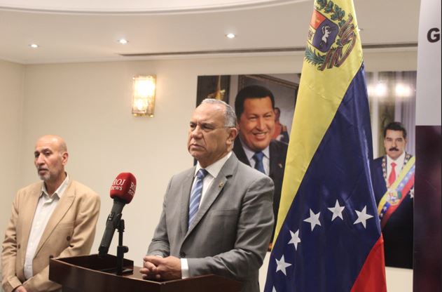 وقال السفير الفنزويلي في كلمة له امام وسائل الاعلام العربية والمحلية وحشود الرابطة العراقية للتضامن مع الشعب الفنزويلي إن “الولايات المتحدة تتعمد انتهاج سياسة تضليل وإطلاق اتهامات غير قانونية بهدف تشويه الحقيقة أمام الرأي العام العالمي”، مشيرا في الوقت ذاته إلى أن “الحكومة الفنزويلية التي تقودها بالوكالة ديلسي رودريغيز فتحت باب الدبلوماسية سعيا لتحقيق السلام”.